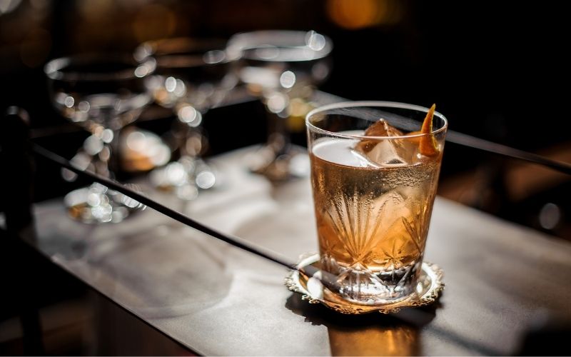 - Garnish with an orange peel.